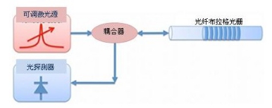其实现原理如下:光纤光栅属于反射型工作器件,当扫描激光光源发出的波长连续调谐激光通过传输光纤射入时,光纤光栅会根据自身的温度选择性的反射特定的波长,并沿原传输光纤返回;根据被反射的激光波长可以分析出光纤光栅的温度。