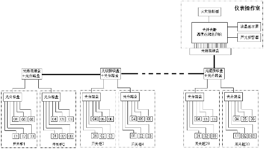 光纤光栅测温主机为机柜式安装,安装在仪表控制柜内,采用AC220V供电,输出信号为RS485/232和无源接点开关信号。测温主机的各个光通道接口分别连接光纤光栅温度传感器。各个分区的报警信号通过光纤光栅测温主机输出给火灾报警控制器,实现火灾报警及地址判断。