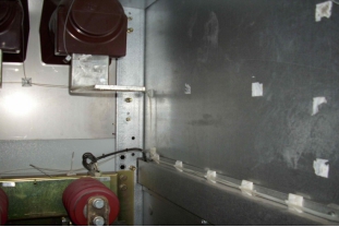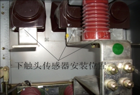 FBG温度传感器采用SY-40航空胶(可耐300度高温)粘于静触头附近的铜排上,按照招标要求传感器固定位置离动静触头接触点距离小于250px.具体如下图所示;